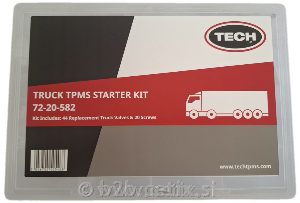 Idealen pripomoček za vulkanizerske delavnice, servisne centre in upravljalce voznih parkov. Vse-v-enem TPMS začetni set vključuje celoten nabor TECH TPMS ventilov za tovorna vozila ter komplet nadomestnih vijakov. Zasnovan je tako, da imajo monterji vedno pri roki pravi del za katero koli platišče, kar bistveno poveča učinkovitost v zahtevnih servisnih okoljih.