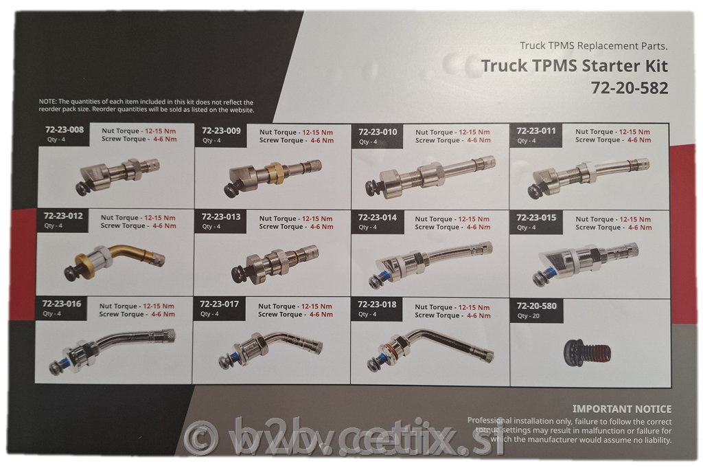 Profesionalni TPMS začetni set za tovorna vozila (44 ventilov + vijaki)