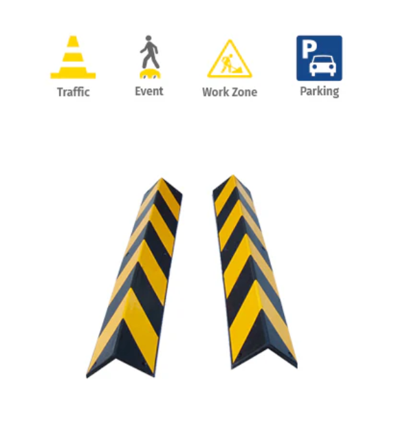 Gumijasti kotni ščitniki so idealna rešitev za zaščito in označevanje robov v prostorih z visoko frekvenco prometa, kot so garaže, parkirišča, skladišča in logistični centri. Zagotavljajo maksimalno varnost tako za objekte kot za vozila.