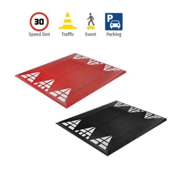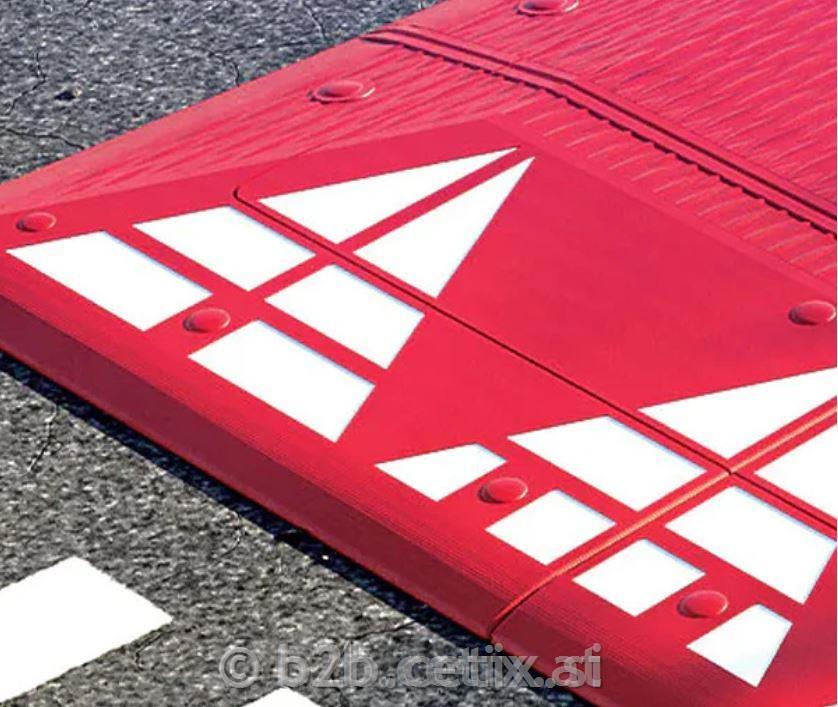Ležeči policaj s 6 belimi odsevnimi puščicami, idealne za območja z omejitvijo hitrosti 30 km/h. Na voljo v manjši in večji izvedbi, učinkovito umirjajo promet, ne da bi ovirale avtobuse, intervencijska vozila ali kolesarje. Izdelane iz trpežnega materiala za dolgo življenjsko dobo, enostavne za namestitev s priloženim kompletom za pritrditev.